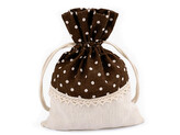 Dárkový pytlík 13x18 cm lněný s puntíky a krajkou - 10 ks - 5 hnědá kávová