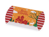 Vánoční dárková krabička sob, Mikuláš, sněhulák, perníček, kostelík - 12 ks - 2 oranžová krajina