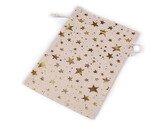 Dárkový pytlík hvězdy metalické 20x30 cm lněný - 10 ks - 2 režná zlatá
