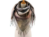 Šátek s třásněmi květy 105x105 cm - 1 ks - 8 šedá béžová