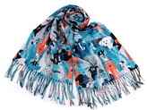 Šátek / šála typu kašmír s třásněmi, psi 70x180 cm - 1 ks - 6 modrá světlá