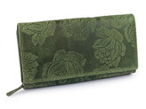 Dámská peněženka kožená s květy - 1 ks - 15 zelená světlá