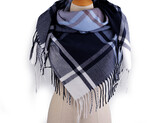 Velký teplý šátek / pléd s třásněmi, jenobarevný, káro 100x105 cm - 1 ks - 9 modrá tmavá modrá
