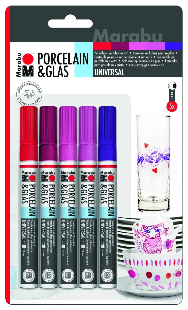 Marabu popisovač na porc. a sklo/sada 5x 12mm Popusťte uzdu své fantazii! Vybarvěte si nádobí těmito trendy bobulovými barvami od Marabu. Malování šálku se svým jménem nebo veselým designem je skvělá zábava - navíc se můžete pyšnit také vytvořením něčeho jedinečného. Podívejte se, co můžete...