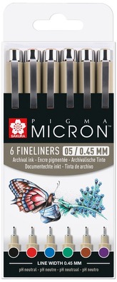 Cienkopisy 6-kol. Pigma Micron 05 kolory podstawowe, Sakura