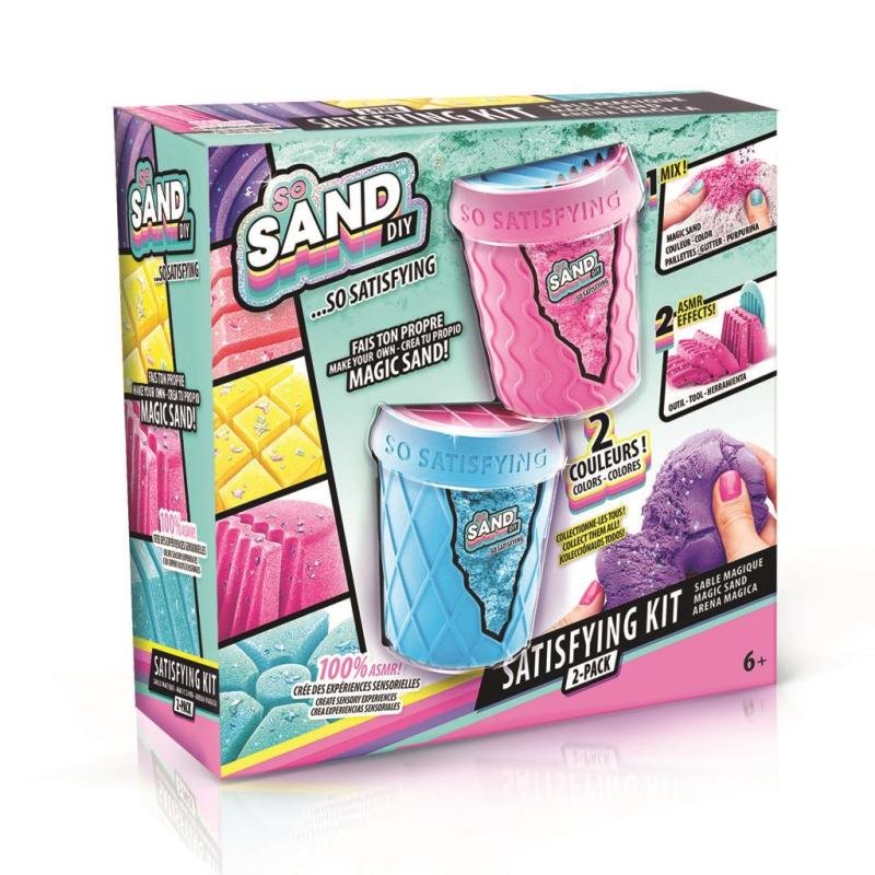 Vyrobte si kouzelný písek. Začněte tak, že do něj přidejte kouzelný gel a důkladně ho promíchejte s pískem. Krájejte ho, tvarujte ho, vytvářejte na jeho povrchu různé vzory. Nebojte se použít různé formičky. Je to opravdu zábava. Je to pouze na vás a vaší fantazii. Mějte všech 6 jedinečných barev. Obsahuje: 2 kelímky, 2 písky, 2 kouzelné gely, 2 sáčky s doplňky, 2 vykrajovátka. Věk: 6 +
