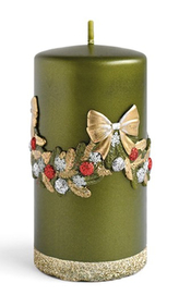 Świeca GIRLANDA Aplikacja walec duży 7xh18cm zielona parafinowa