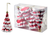 SANTA LILA Komplet 4 bombek 6,5x5,5x11choinki czerwono białe