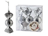 SANTA LILA Komplet 3 bombek CUKIEREK srebrne 4x4x11cm
