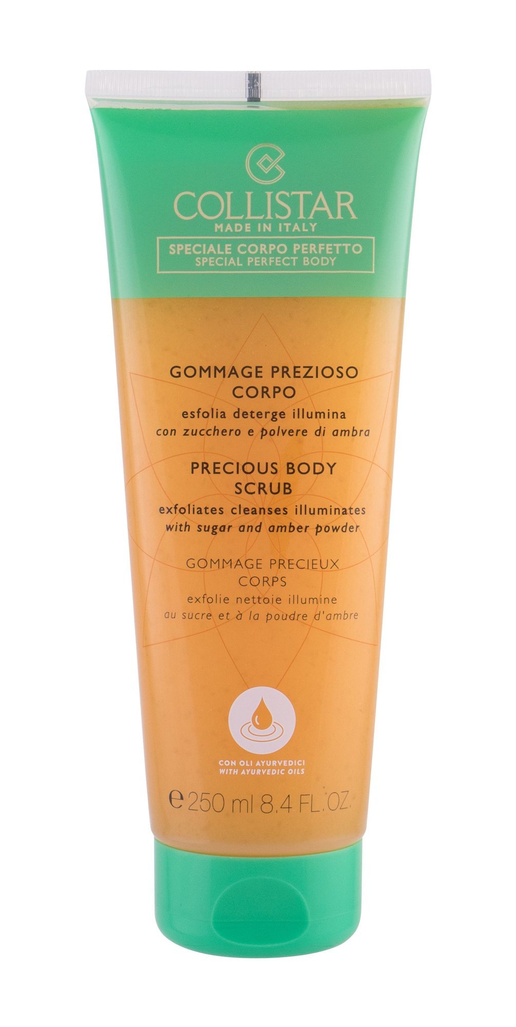 Tělový peeling Collistar Precious Body Scrub využívá cukrových krystalků a jantarového prášku k odstranění odumřelých kožních buněk. Díky tomu je pokožka jemná a hladká. Vzácné rostlinné oleje pokožku vyživují a zajišťují její pružnost.