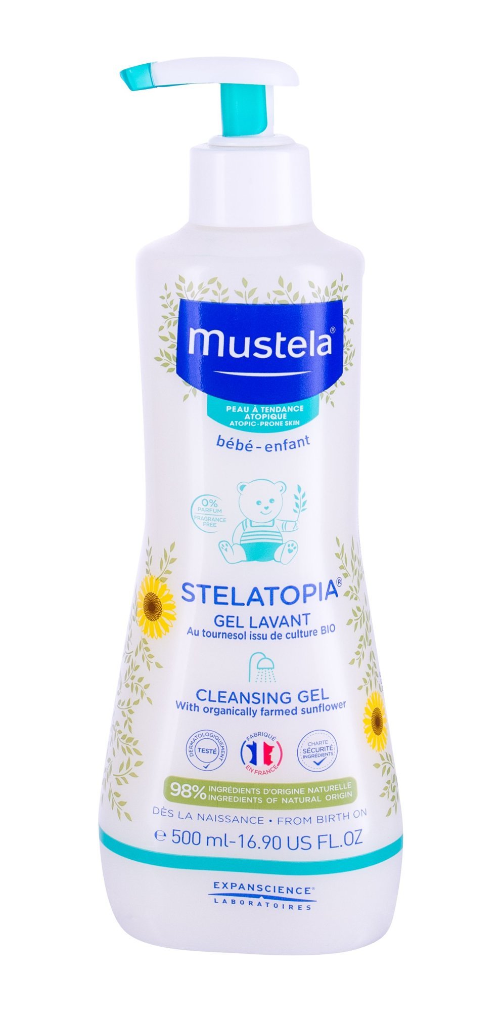 Mycí gel Mustela Bébé Stelatopia Cleansing Gel je určen pro miminka a malé děti s atopickou pokožkou. Velmi jemně odstraňuje nečistoty a díky slunečnicovému a avokádovému oleji zároveň o pokožku pečuje.