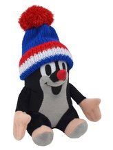 Krtek 14cm sedící, kulich modrá-trikolóra