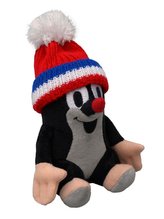Krtek 14cm sedící, kulich červená-trikolóra
