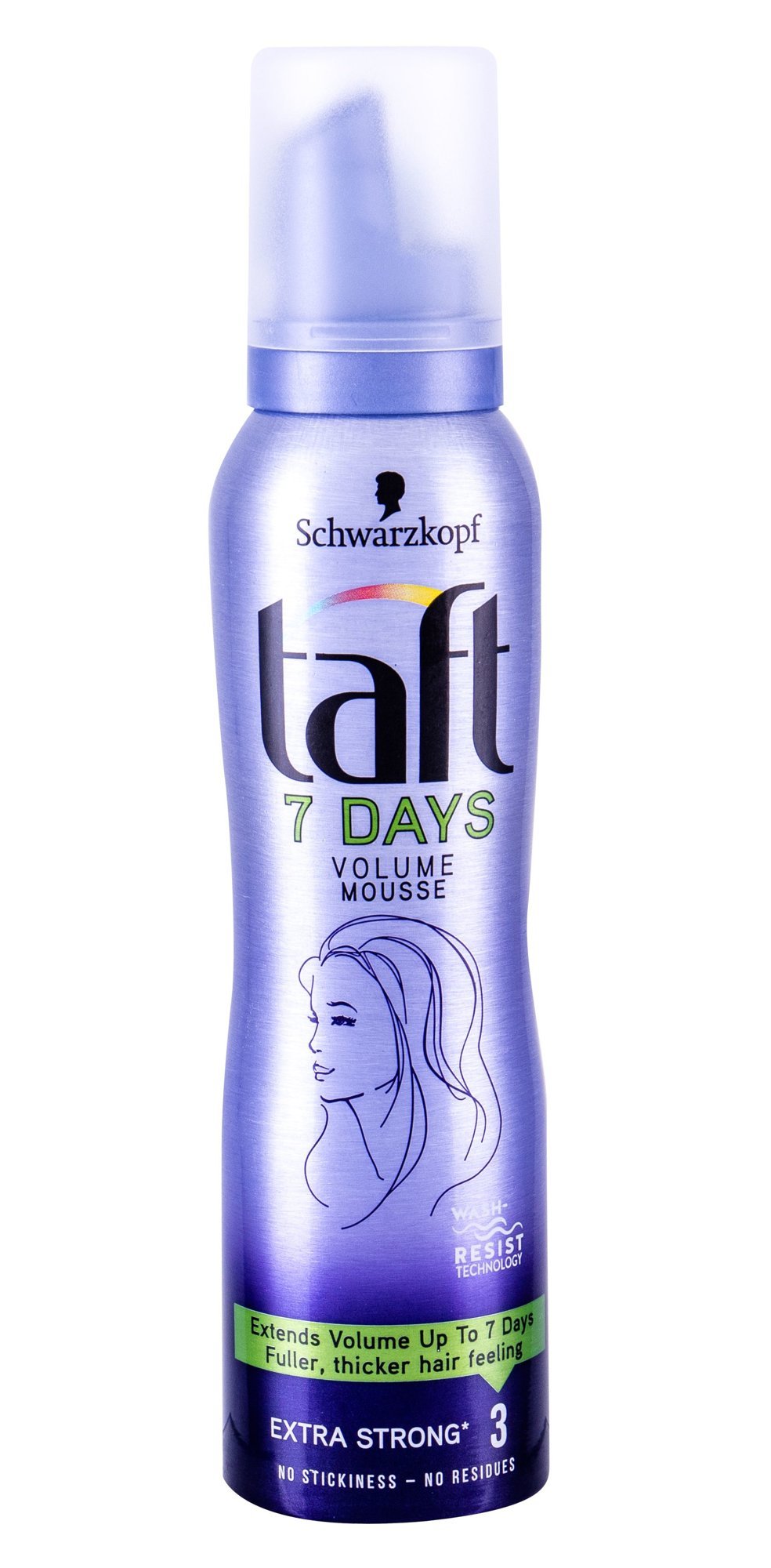 S pěnovým tužidlem Schwarzkopf Taft 7 Days, obsahujícím technologii Wash-Resist, dosáhnete objemných vlasů až po dobu 7 dní i po vícenásobných umytích.