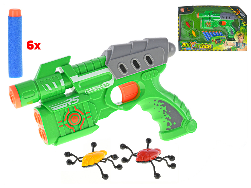 S touto skvělou pistolí přichází nový styl zábavy. Pistole má zásobník na náboje a měří 23 cm. Součástí balení jsou i pěnové náboje a hmyz jako terč. Podstatou hry je sestřelit, co nejrychleji všechny brouky . Dokážeš je sestřelit dřív než tvůj soupeř? przeczytaj całość