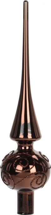 Skleněná špice na stromek 25x6 cm, jantarová tmavá