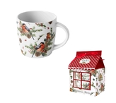 Porcelánový hrnek VÁNOČNÍ PTÁČCI 1, 400 ml v papírovém domečku