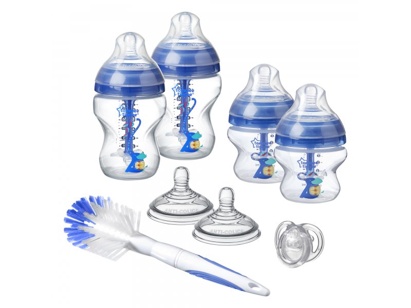 Výhodná sada kojeneckých lahviček Tommee Tippee ANTI-COLIC Advanced obsahuje 2x láhev 150ml se savičkou s pomalým průtokem 0m+, 2x láhev 260ml se savičkou s pomalým průtokem 0m+, 2x savičky se středním průtokem 3m+, 1x kartáč na láhve a savičky, 1x silikonové šidítko 0-6 měsíců.Kojenecká láhev...