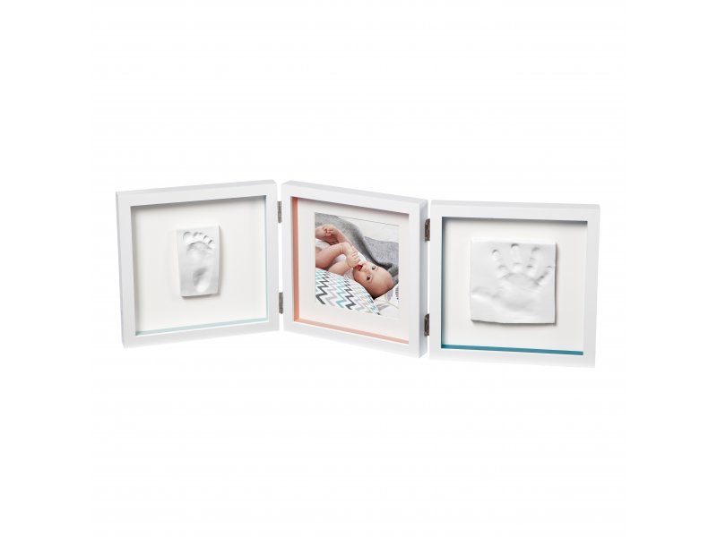 Ramka Baby Art My Baby Style Double Essentials oferuje trzy oddzielne miejsca na zdjęcie oraz odcisk rączki i stópki Twojego maluszka. Stwórz piękną dekorację, która jednocześnie pomoże zachować wspomnienia z pięknego okresu po narodzinach Twojego dziecka.