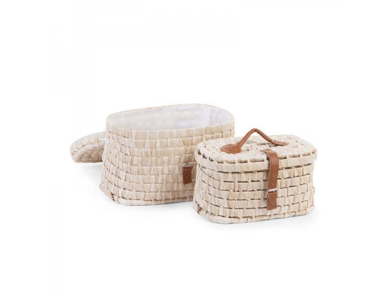 Dva krásné slaměné kufříky s koženkovými držadly a zapínáním jsou ideální na ukládání hraček a zároveň tvoří originální dekoraci dětského pokoje. Uvnitř kufříků je podšívka ze 100% polyesteru.Menší kufřík je uložen ve větším kufříku.Rozměry: 29 x 19 x 21 cm / 26 x 15 x 18 cm przeczytaj całość