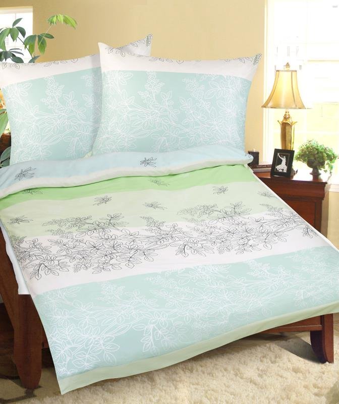 Povlečení bavlněné - sv.zelené jaro, polštář s bílou kytičkou - 140x200, 70x90