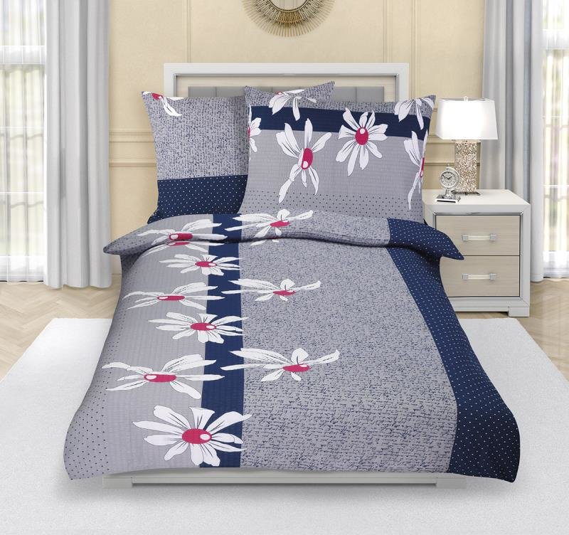 Povlečení krepové - kopretina na šedé - 140x220, 70x90 cm