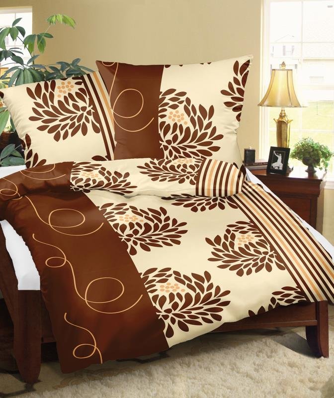 Povlečení bavlněné - hnědá chryzantéma - 140x200, 70x90