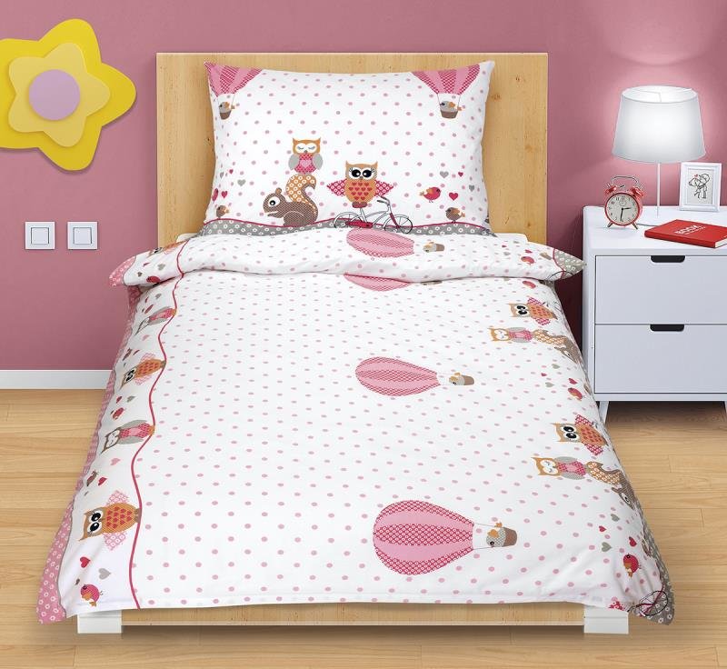 Povlečení bavlněné Junior - sovička růžová - dětský motiv - 140x200, 70x90 cm
