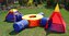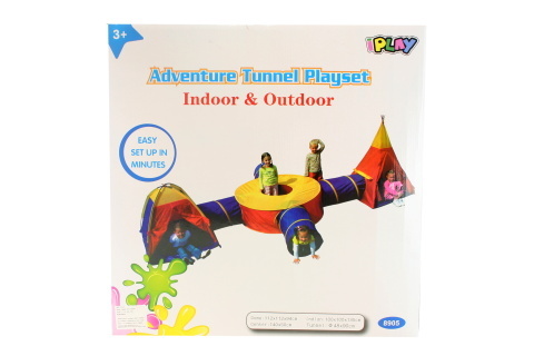 Niezapomniana zabawa dla wszystkich dzieci. Nadaje się do użytku wewnątrz i na zewnątrz. Idealny do ogrodu lub na taras. Zestaw składa się z trzech domków i czterech tuneli. W namiocie może bawić się jednocześnie kilka dzieci. Wymiary namiotu igloo ok. 112 x 112 x 94 cm, namiotu tipi 100 x 100 x 135 cm, środkowy 140 cm, boczne tunele 90 x 48 cm. Całkowita długość to ponad 500 cm. Wymiary opakowania ok. 50 x 50 x 13 cm. Wiek 3+