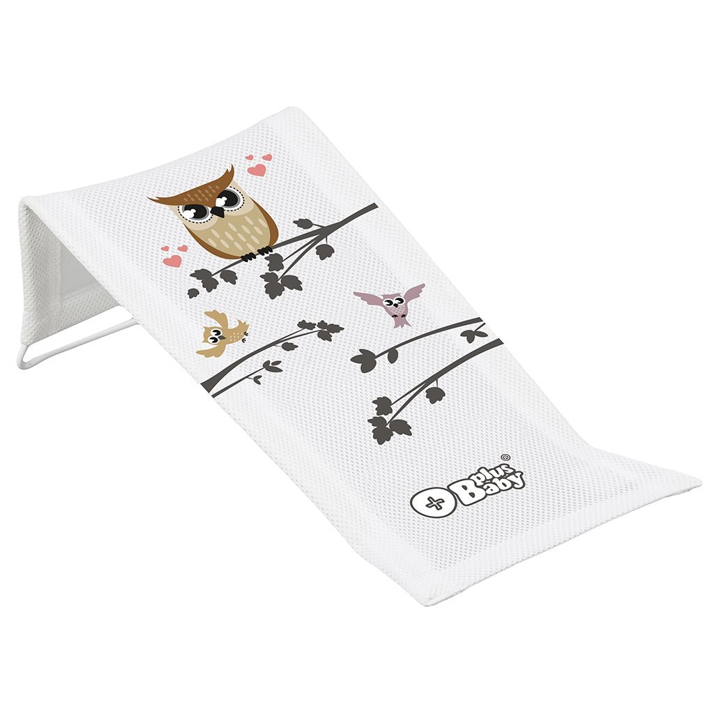 Materiałowy leżaczek do wanienki z obrazkiem sowy. Nowoczesny design, solidne wykonanie, łatwa pielęgnacja - to wszystko oferuje leżaczek. To bardzo praktyczny pomocnik w opiece nad niemowlakiem. Materiał: stalowy stelaż, tekstylny pokrowiec. Na stelażu jest naciągnięty pokrowiec tekstylny, który można łatwo zdjąć i wyprać w pralce. Wymiary: dł. x szer. ok. 42x20 cm.
