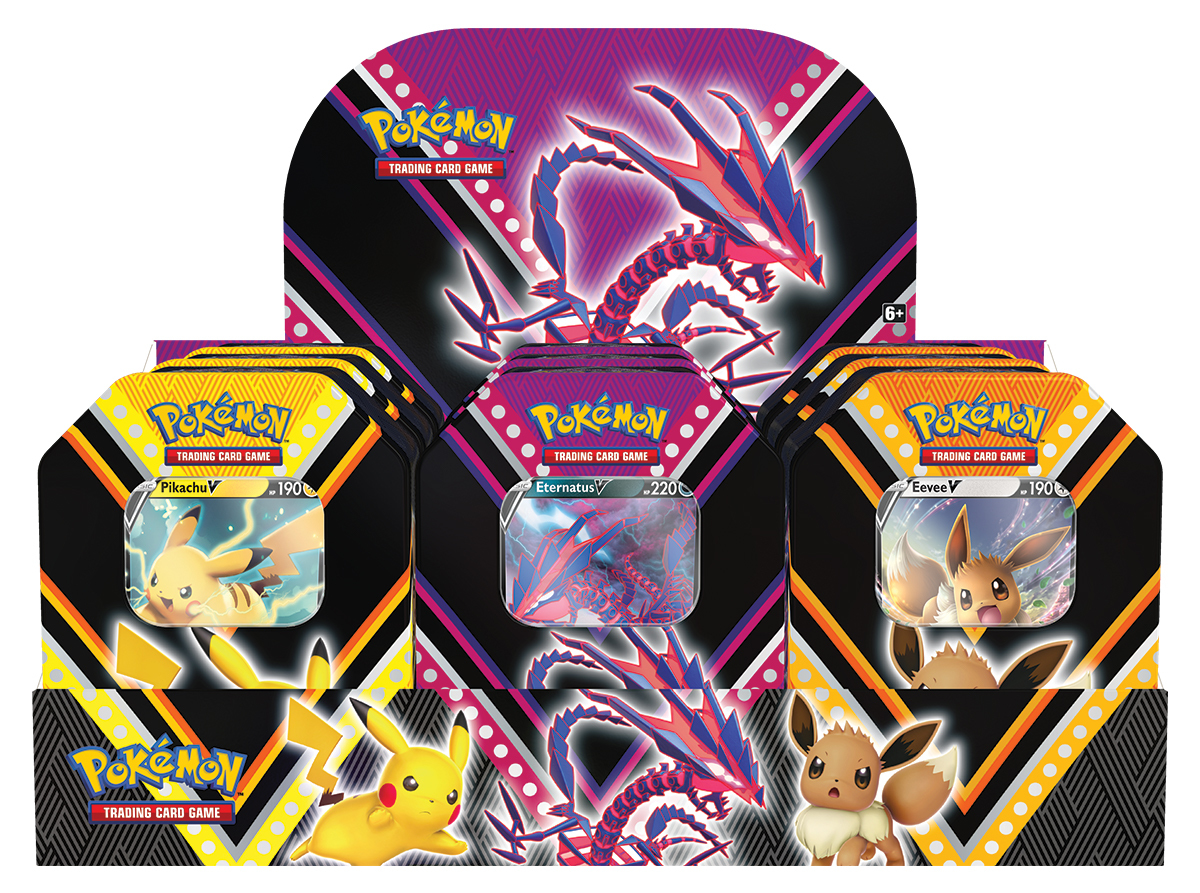 Krásná plechová krabička s boostery a foilovou kartou!Obsah balení:• 1 ze 3 foilových karet Pokémonů V: Eternatus V, Pikachu V nebo Eevee V!• 1 kód pro Pokémon TCG online• 4 booster przeczytaj całość