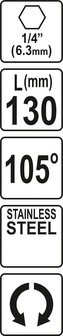 Praktický adaptér pro práci v místech s horší dostupností. Opatřen převodem s kuličkovými ložisky s možností práce v obou otáčivých směrech. Adaptér je vyroben z nerezové oceli s úhlem 105° délky 130 mm. Zakončení HEX 1/4", maximální točivý moment 13 Nm a maximální rychlost otáčení 400 ot./min. przeczytaj całość