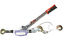 Lanové vytahovací zařízení s ručním pohonem, zhotovené z ocelového těla s bubnem, ozubeným kolem, rohatkou a hnací pákou.