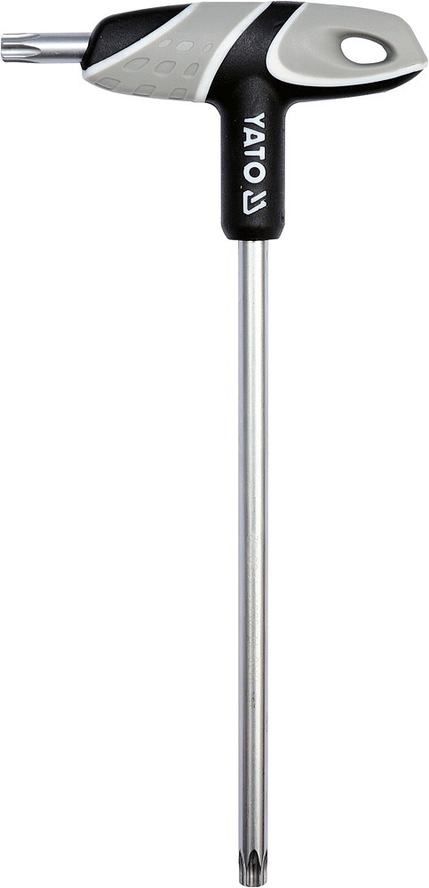 Klíč v provedení T šroubovák, osazený 2x torx (hvězdička) klíčem s otvorem (1x dlouhý, 1x krátký) a ergonomickou rukojetí, díky které je jeho použití opravdu snadné. Vyrobeno z oceli S2, která zaručuje dlouhou životnost.