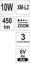 Svítilna k upevnění na hlavu osazená LED s vysokým výkonem (CREE XM-L2 10W), která zabezpečuje výtečný světelný tok. Svítilna je vybavena funkcí ZOOM, která umožňuje regulovat paprsek světla a tím osvětlovat blízké, nebo vzdálené objekty. Také disponuje třemi různými režimy světla (plné 100%,...