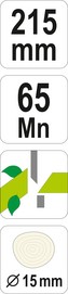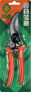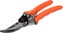 Ręczne nożyce ogrodowe, wykonane ze stali 65Mn, ze skośnym ostrzem o całkowitej długości 205 mm, do cięcia o średnicy do 15 mm, przeznaczone do przycinania gałęzi i innych materiałów roślinnych, z antypoślizgową rękojeścią dla bezpiecznego trzymania.