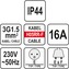 | kabel | H05RR-F (3 x 1,5 mm2) |