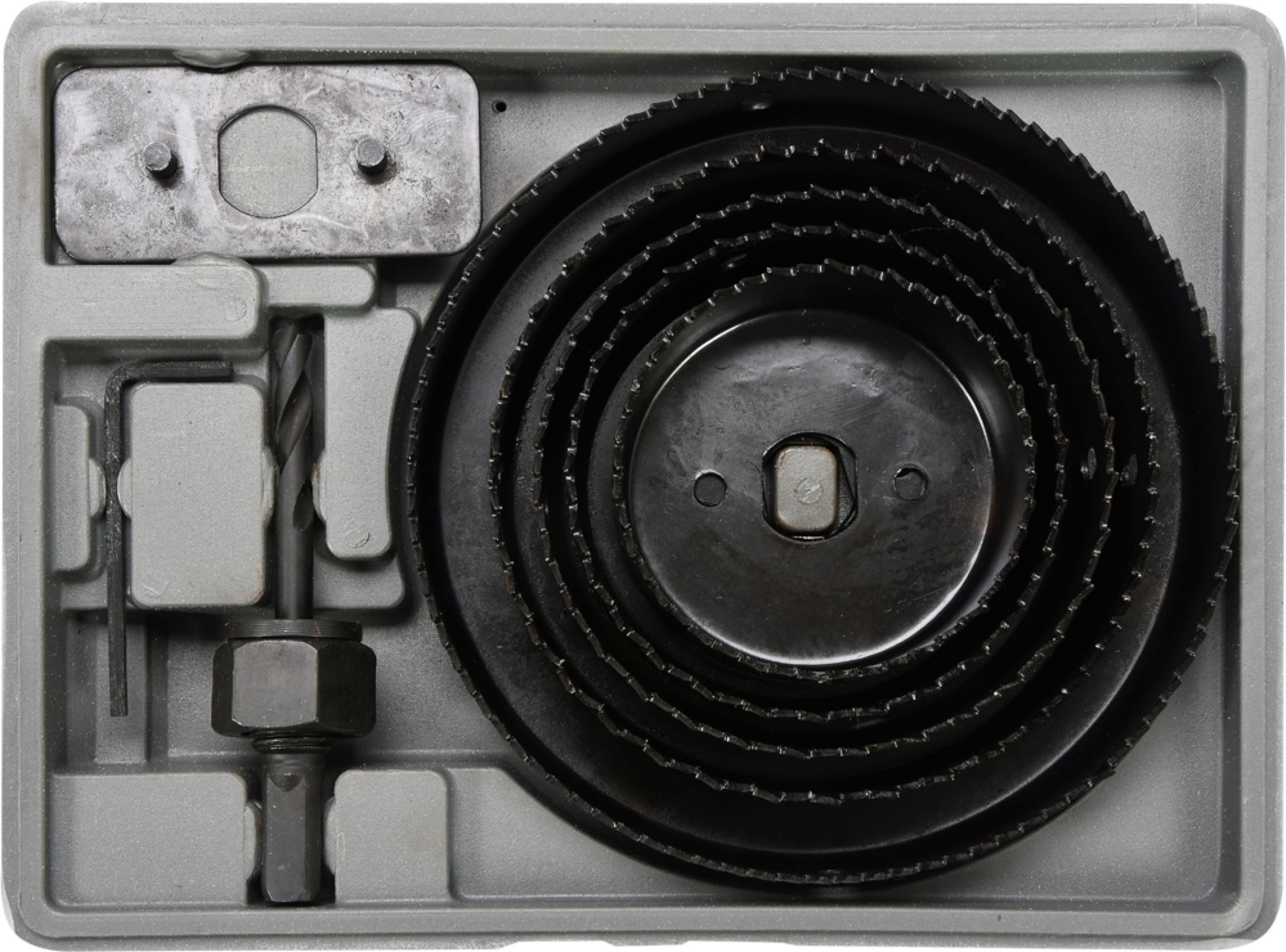 Sada vrtacích korunek do dřeva s průměry 64 - 127 mm. Zhotovení jednotlivých nástrojů z uhlíkaté oceli s černým povrchem. Uchycení do vrtačky pomocí trojhranu 8,9 mm. Sada je uložena v praktickém plastovém kufříku spolu s potřebnými součástmi. Technická data průměr korunek 64 - 127 mm...