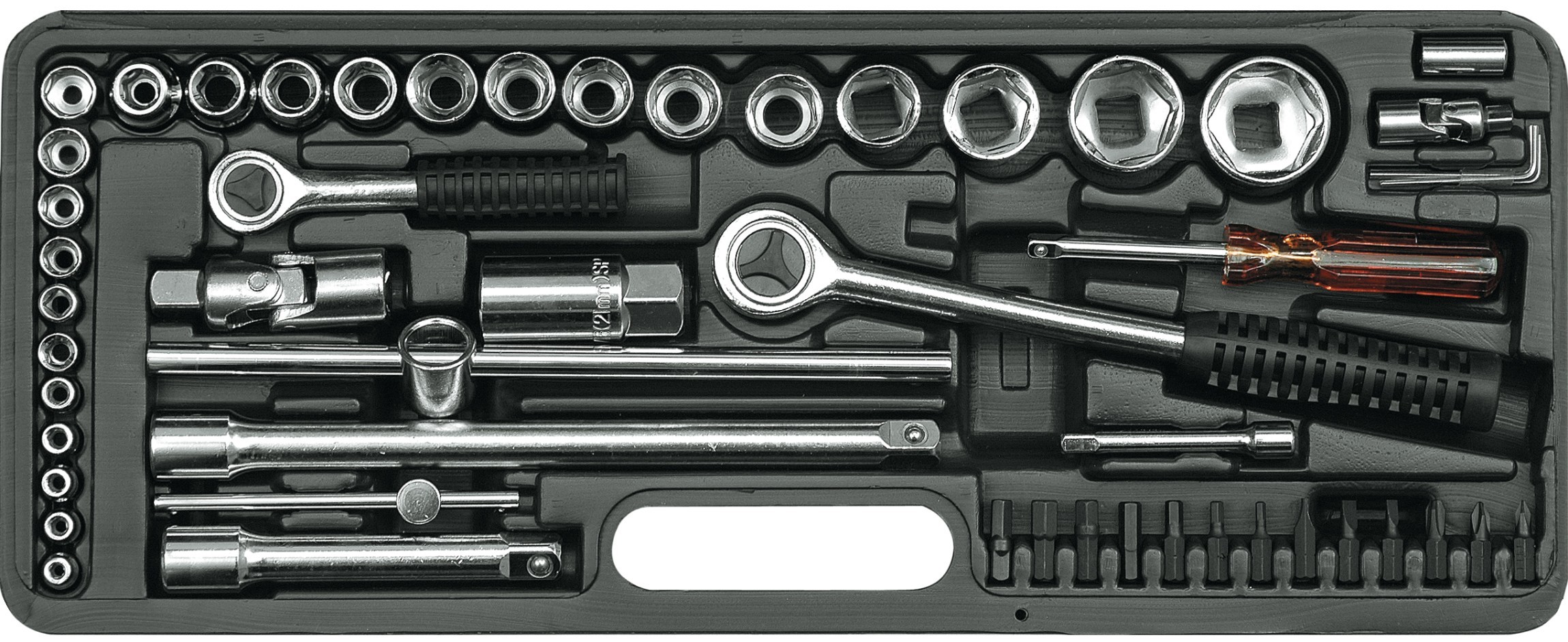 Obsah balení: Velikost ořechů 1/4": 4; 4,5; 5; 5,5; 6; 7; 8; 9; 10; 11; 13 mm Velikost ořechů 1/2": 10; 11; 12; 13; 14; 15; 16; 17; 18; 19; 22; 27; 30 mm Prodlužovací nástavce: 1/4" - 75 mm; 1/2" - 125; 250 mm Ráčny: 1/4" - 125 mm; 1/2" - 250 mm Šroubovák 1/4": 140 mm Nástrčný klíč typu T: 1/2" - 250 mm; 1/4" - 110 mm Ořech na zapalovací svíčky 1/2": 21 mm Redukce: F1/4" x M1/2"; 1/4" x 6 mm Imbus: 1,5; 2; 2,5 mm Bit Imbus: 3; 4; 5; 6; 7; 8 mm Bit plochý: 4; 5,5; 7 mm Bit PH: PH1; PH2; PH3 Plastový kufřík
