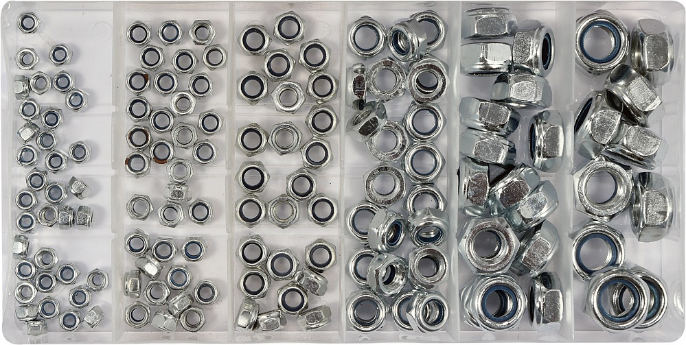Sada 146 ks kvalitních pojistných matic s nylonem. Vše je přehledně uspořádáno v kompaktním plastovém kufříku. Obsah balení 35x M4 35x M5 25x M6 25x M8 16x M10 10x M12 przeczytaj całość