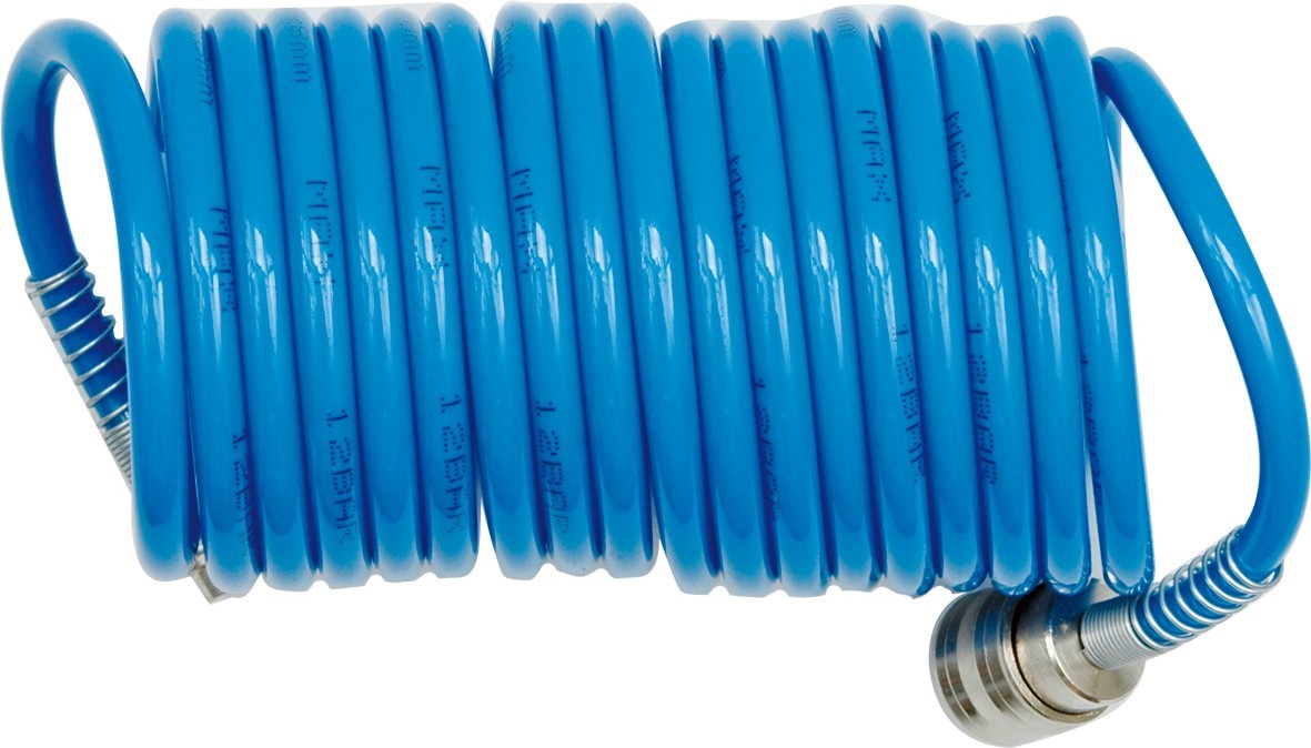 Flexibilní spirálová hadice na stlačený vzduch, která má na obou koncích rychlospojky pro snadné a rychlé připojení a odpojení kompresoru a pneumatického nářadí. Po použití se hadice automaticky svine na minimální velikost. Tím se vyhnete rozvinování a opětovnému navinování hadice.