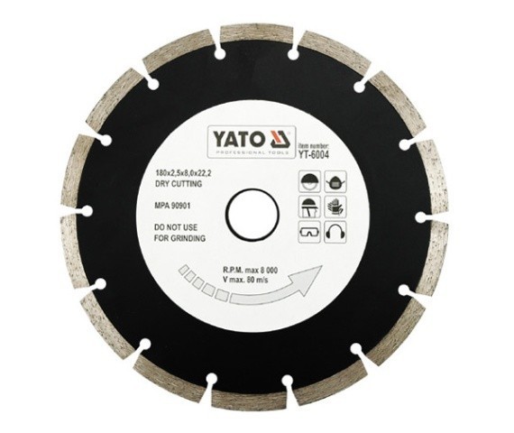 Kotouč diamantový pro suché řezání s použitím na beton, dlažbu, zdivo a kámen. Technická data průměr 180 mm otvor 22,2 mm max. ot./min 8 000 šířka 2,5 mm przeczytaj całość