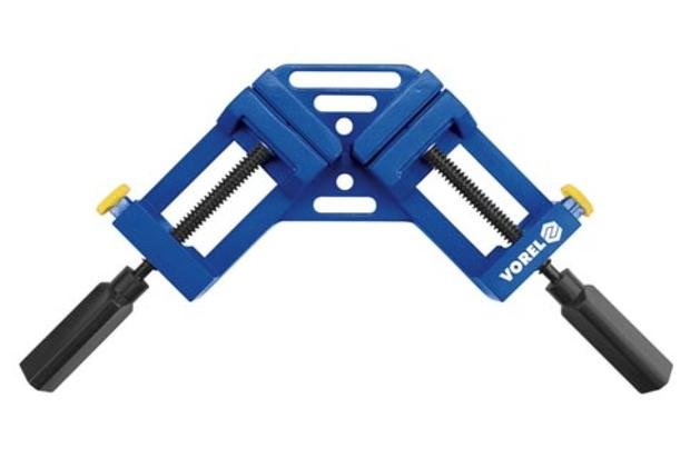 Truhlářská svěrka úhlová 65mm. Stabilní hliníková konstrukce se dvěma upínacími šrouby umožňuje uchycení a utažení lepených prvků v úhlu 90 stupňů. Speciální tesařská svěrka nejčastěji používaná pro lepení rámů. przeczytaj całość