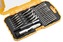 Praktická sada mini šroubováku s bity a nástavci. Nářadí je precizně zpracováno z CrV oceli a jednotlivé nástavce s prodlouženou (cca 5 cm) stopkou 5/32"(4 mm) jsou magnetické, čímž usnadňují práci se součástkami. Tělo šroubováku je v přední části opatřené mechanickou, vysouvací, pojistkou...