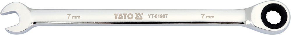 Ráčnový očkoplochý klíč Yato - na jedné straně klasický stranový klíč, na straně druhé očkový klíč s dvanáctihranným profilem vybaveným ráčnou s jemným dělením 72 zubů. Tělo klíče je vyrobeno z chromvanadiové oceli CrV6140. Povrch je vyleštěn do vysokého lesku.Díky svému profilu se používá pro...