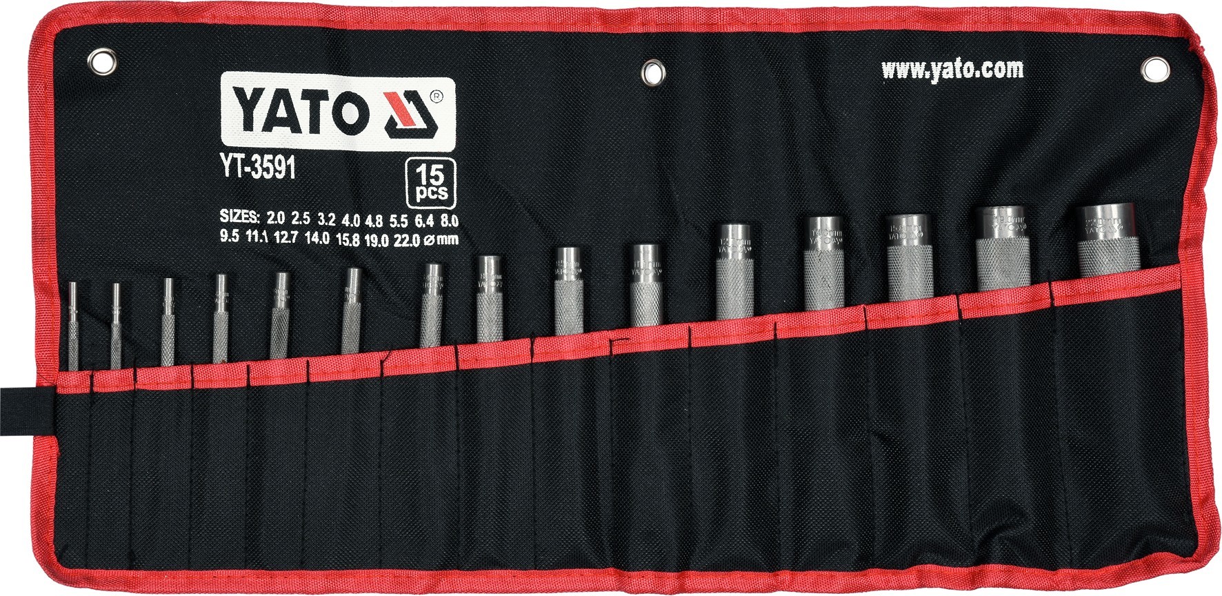 • Zestaw przebijaków YATO 15 szt., średnice 2 - 22 mm