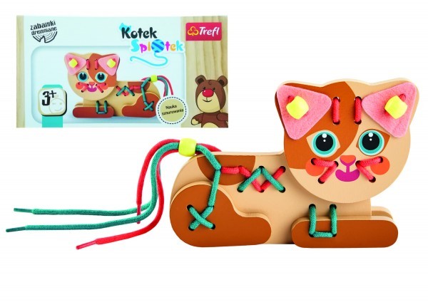 Dřevěná hračka, kterou si můžete vyrobit sami. Sada obsahuje filcové a dřevěné prvky, provázky a korálky. Vytvořením koťátka dítě zdokonaluje manuální dovednosti a rozvíjí kreativitu. Zatímco se baví, učí se barvy a procvičuje soustředění. Všechny materiály použité k vytvoření byly natřeny netoxickými barvami.