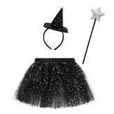 Dětská sada Čarodějnice s hvězdami – sukně, čelenka a hůlka