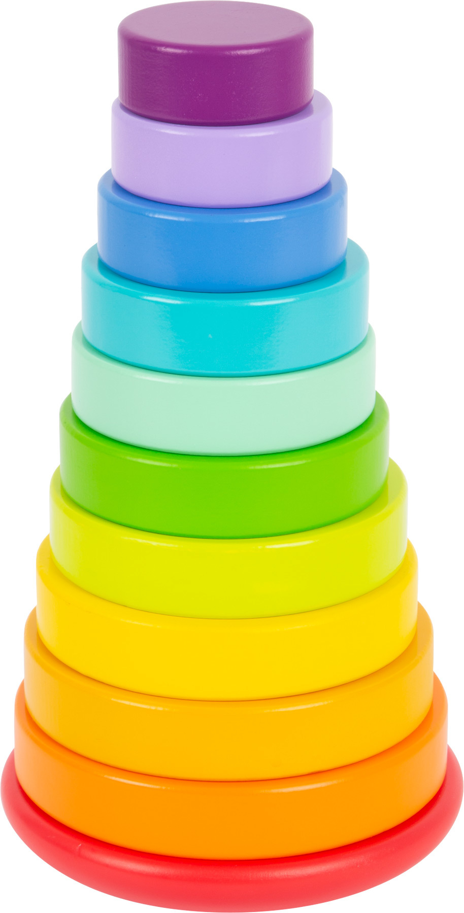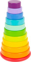 Small Foot Motoriczna składana - wieża do układania Tęcza Zabawne układanie! Ta duża drewniana składana wieża w kolorach tęczy z pewnością zachwyci dzieci. Drewniane krążki o różnych wielkościach dzieci muszą nasadzić na podstawę z trzpieniem. Przy nasadzaniu muszą jednak obracać krążki! Trzpień ma bowiem małe wypustki. Zabawa dobrze ćwiczy małą motorykę dzieci, jak również ich myślenie logiczne. Dzięki zaokrąglonej podstawie wieża podczas układania chybie się na boki. Długotrwała zabawa, podczas której dzieci nauczą się rozpoznawać kolory i kształty oraz wielkości. Niemiecka firma Legler koncentruje się na produkcji wysokiej jakości drewnianych zabawek od 1996 roku. Wszystkie drewniane zabawki marki Small Foot posiadają oznaczenie CE i są produkowane zgodnie z europejską normą bezpieczeństwa zabawek EN 71. Użyte farby są specjalnie opracowane do drewnianych zabawek i są odporne nawet na ślinę dzieci. Drewno używane do tych zabawek pochodzi przeważnie z przedsiębiorstw leśnych zaangażowanych w zalesianie. Daje to klientom możliwość przyczynienia się do zachowania naturalnie rosnących lasów. Drewniane zabawki Small Foot to jaskrawo kolorowe produkty, które są w dużej mierze wykonane z naturalnych surowców - drewna. Sprawiają dzieciom radość od najmłodszych lat, rozwijają ich zmysł dotyku i umiejętności sensoryczne. Celem marki Small Foot jest wspieranie rozwoju psychicznego i fizycznego dzieci.
