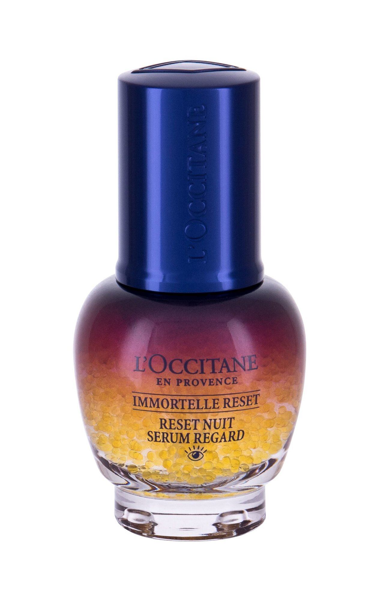 Obnovující noční oční sérum L'Occitane Immortelle Reset Overnight noc po noci navrací vašemu očnímu okolí mladistvý vzhled.Jak vám pomůže olejové noční sérum Slaměnka od L'Occitane?efektivně obnovuje pokožku a podporuje její regeneraci,redukuje známky stárnutí i známky stresu a únavy,po...